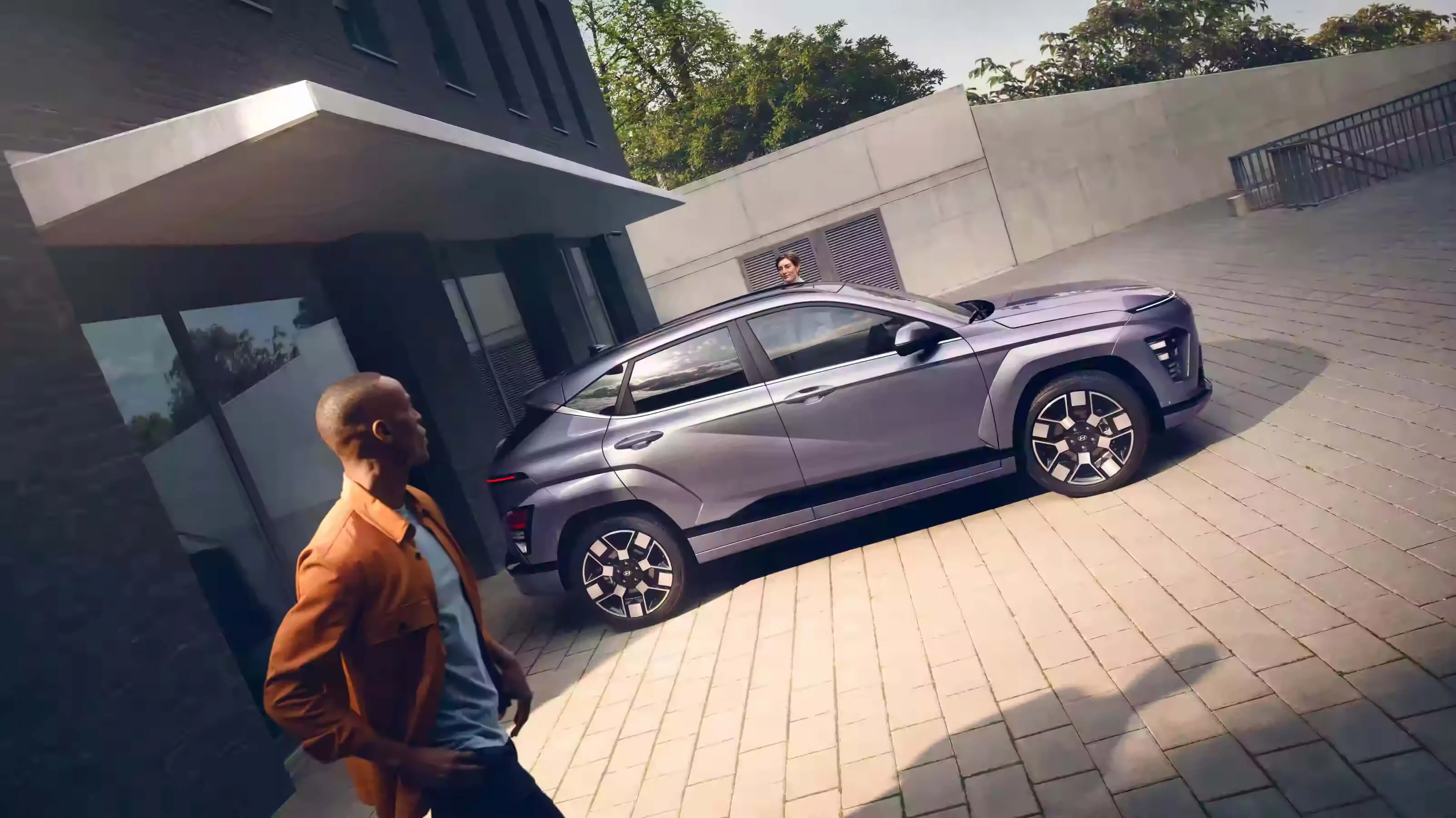 In an unconventional move, we developed the electric version of the new KONA first, and you can see the beauty of that innovation from every angle. Sleekly sculpted, the KONA Electric's clean, distinctive front end and aerodynamic flowing lines highlight the futuristic styling. Bigger and bolder, it has evolved into a larger SUV with upscaled dimensions that reinforce its robust iconic design identity.
