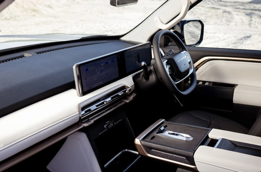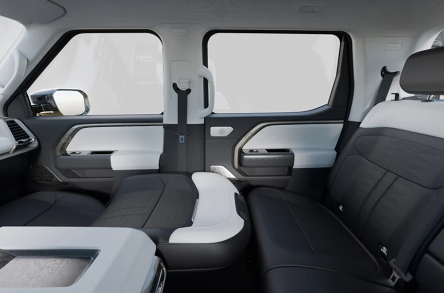 Equipped with air-independent suspension and a multi-link rear axle, the eTERRON 9 delivers a smooth, composed ride. Inside, soft leather upholstery and power-adjustable front seats create a luxurious driving experience, while the easy-access tailgate and practical front trunk (Frunk) offer added everyday convenience.